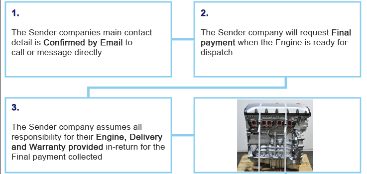 * 3ngines.com pre-negotiate and help reserves engine deals for its users 24/7, in return for a deposit. We will only forwarded delivery or warranty issues to the correct Sender company (whose details have been confirmed also)